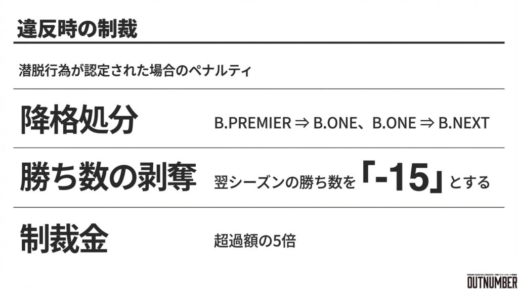 なお、サラリーキャップ制度上の制裁に時効はなく、発覚時点から過去に遡って、制裁を科すとしている。