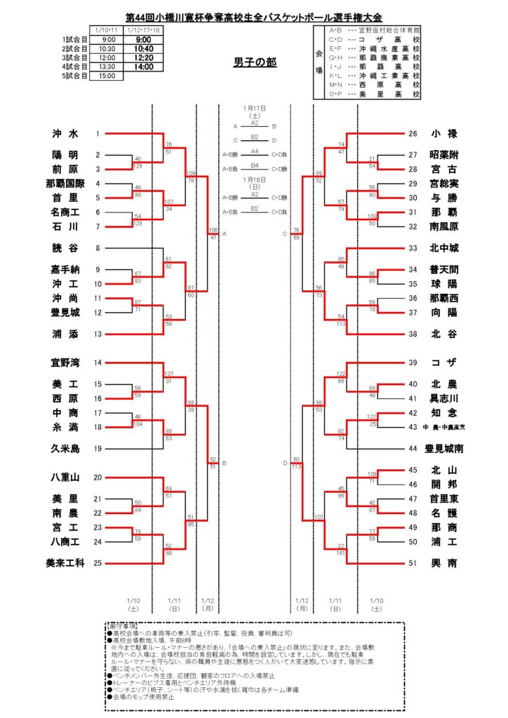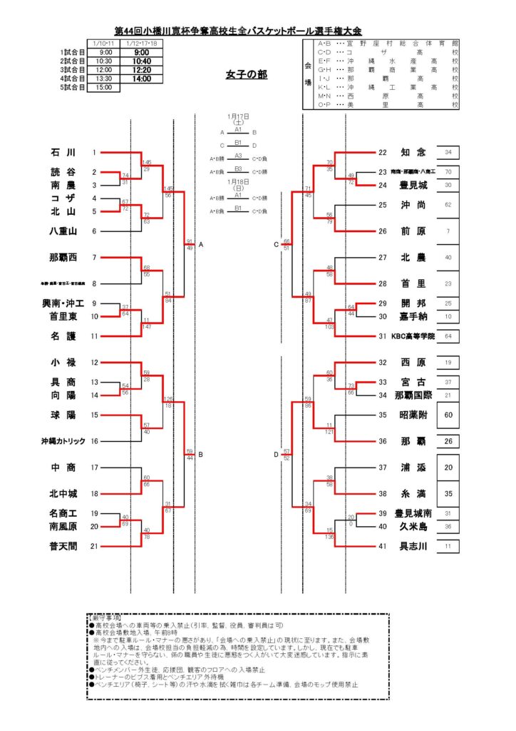 1月17日(土)・18日(日)、第44回小橋川寛杯争奪高校生バスケットボール選手権大会の男女決勝リーグが、バイトするならエントリー宜野座アリーナ(宜野座村総合体育館)で行われた。男子は県立沖縄水産高校、女子は県立石川高校が優勝した。