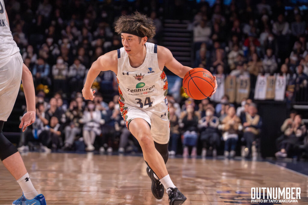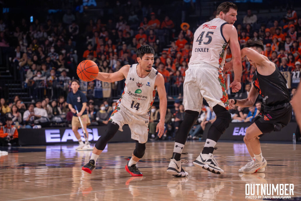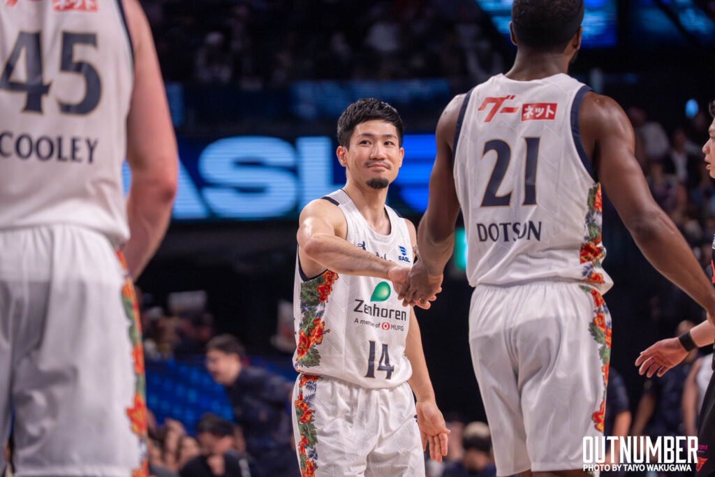 #14 岸本隆一:14得点、5アシストを記録。ゲームを掌握するハンドリングに加え、要所での勝負強い3ポイントは、相手の反撃意欲を削ぐ決定打となった。