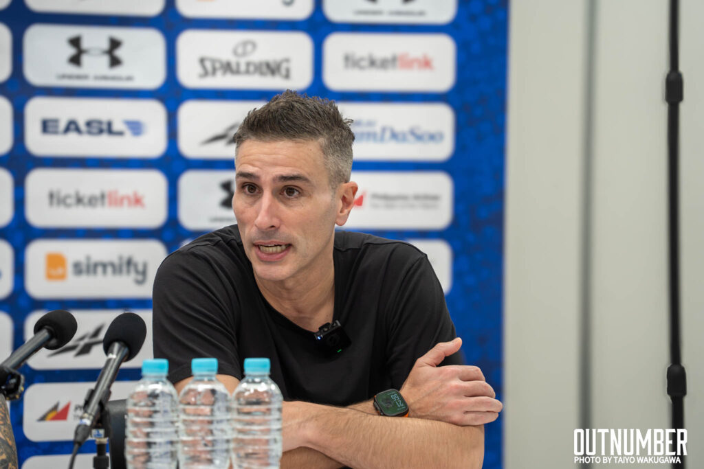 桶谷HC:第4クォーターの残り数分まで接戦だったが、あの時間帯に日本人選手が起点になれず、1対1や単調な攻めからターンオーバーが出てしまった。それに対してビッグマンがフラストレーションを溜める悪循環があった。ただ、今回の桃園戦の前にミーティングで「一度リセットしよう」と話していた。試合後も、日本人選手には責任を持つこと、ビッグマンには切れてはいけないことを伝え、お互いがSamePage(共通認識)に立てたと思う。今日は佐土原などがドライブから良いパスを出し、ボールと人の繋がりが見えたので、こうしたゲームを続けていきたい。