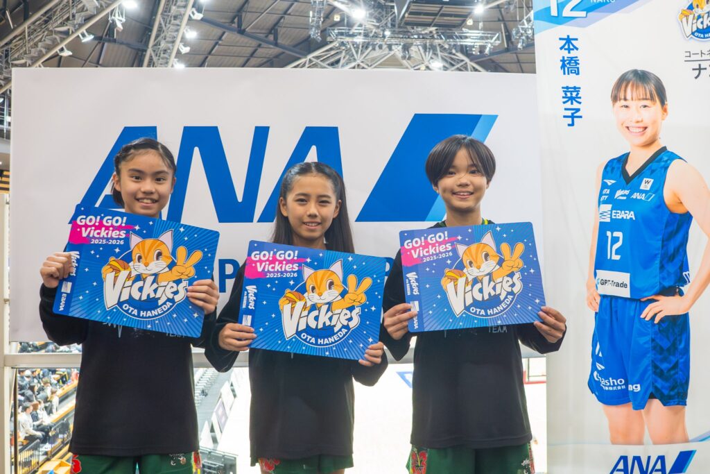 2026年2月、東京で開催された女子バスケットボール Wリーグの試合会場にて、特別な再会が実現しました。東京羽田ヴィッキーズに所属する本橋菜子選手が、自身の社会貢献活動「NAKOプロジェクト」の一環として、ANAの全面サポートのもと、かつてバスケットボールクリニックで指導した沖縄のミニバスチームの子供たちを試合に招待したのです。