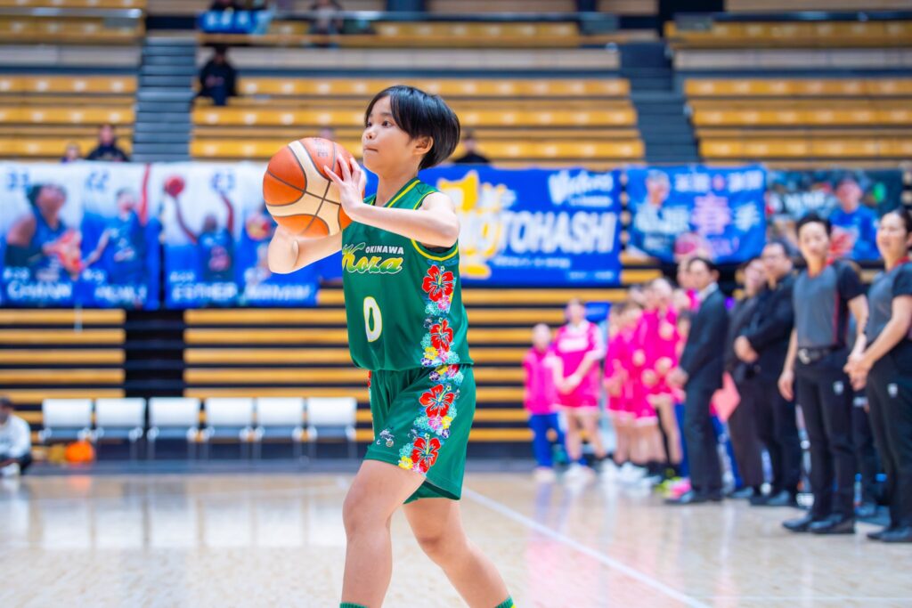 6月に沖縄で行われたクリニックの際、本橋選手が伝えたアドバイスは子供たちの心に深く刻まれていました。「ドリブルは強く突く」という教えをしっかり実践してきたことを伝えて「うまくできるようになりました」と成長を報告。本橋選手は「自分の手元に持てる時間が長くなれば、相手に取られにくくなるから」と、改めてその技術的な意味を丁寧に解説し、自主練を続けるようエールを送りました。