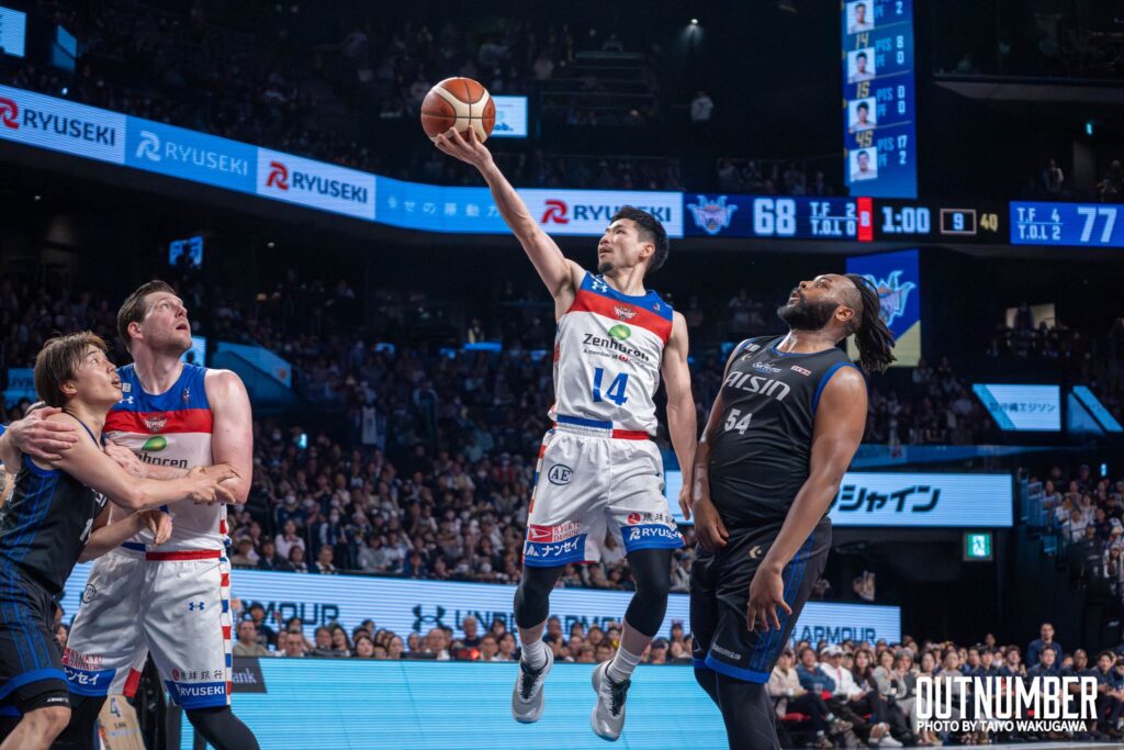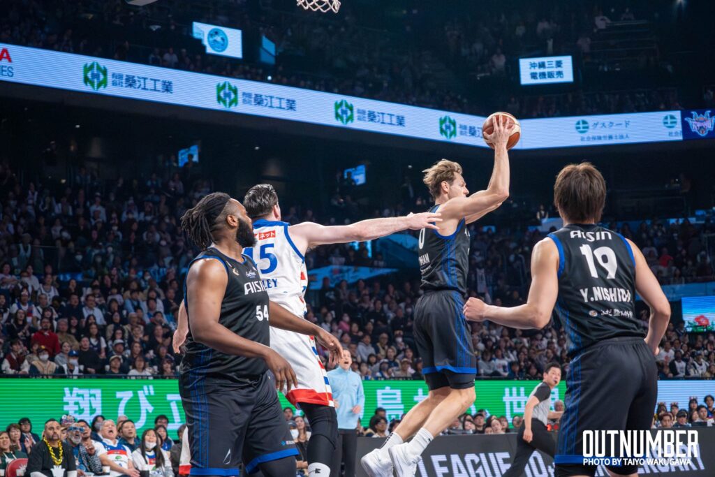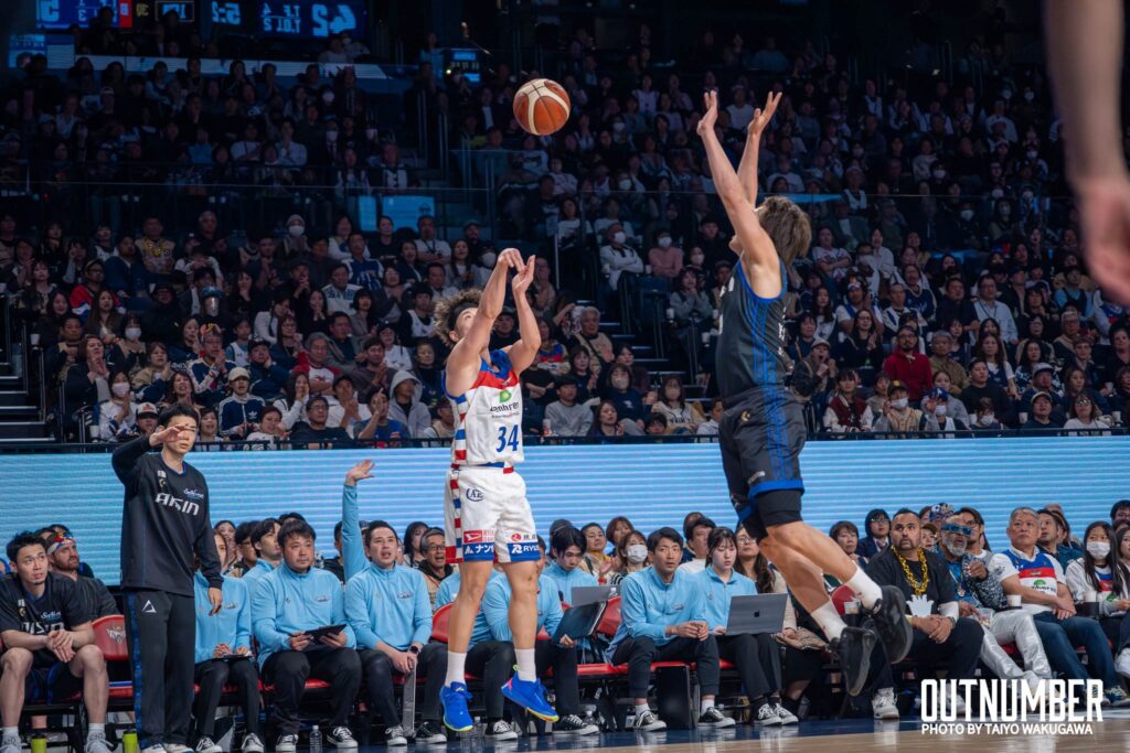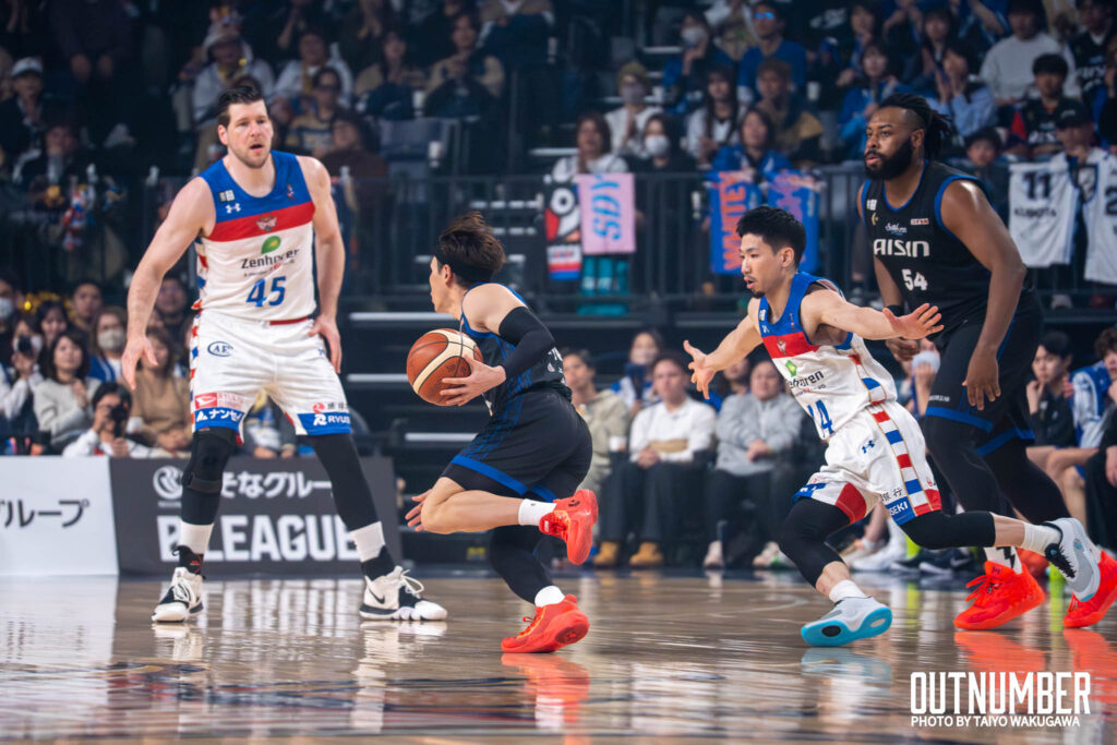 キングスは前節の島根戦で岡田侑大へショーディフェンスを使っており、三河は『ショーもある』と事前にスカウティングしていたはずだ。西田ほどの実力なら、そのスカウティング結果とベンチからの見極めで、後半キングスのショーディフェンスに代償を払わせることは、そう難しい作業ではなかっただろう。