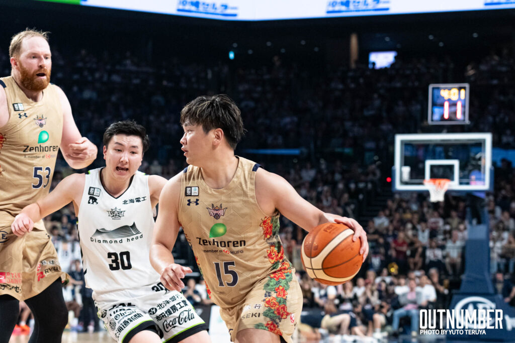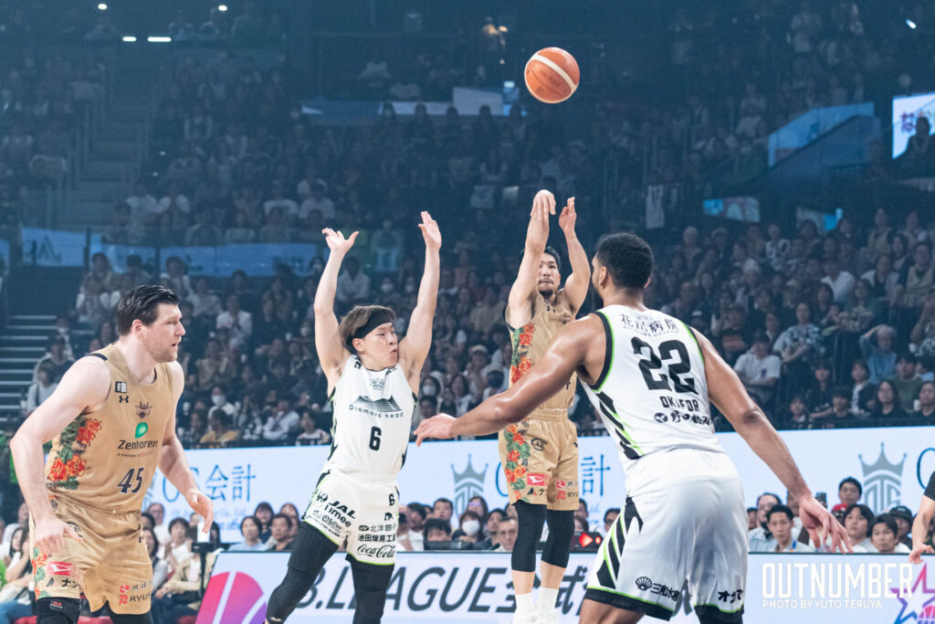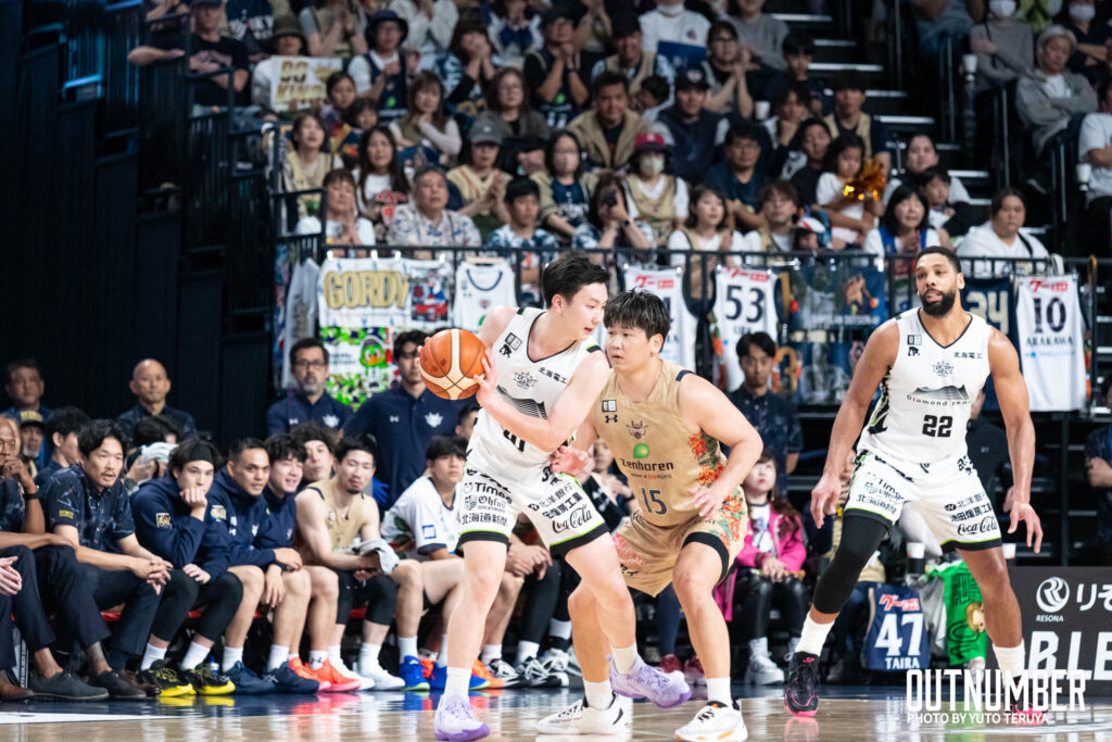 北海道 #30 富永啓生: 両チーム最多の24得点をマーク。厳しいマークに対しても、第4Qで見せた連続得点は圧巻であった。リーグ屈指のシュート能力だけでなく、試合を通じて相手のディフェンス強度に適応する修正能力の高さを示した。