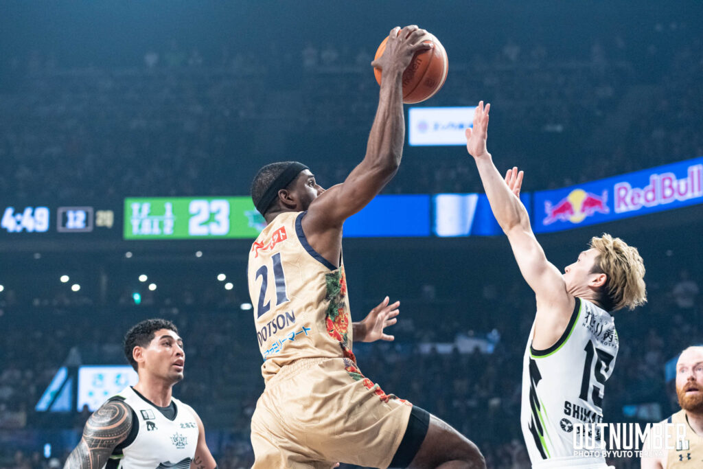 ドットソン: 相手がアンダーで守ってくるので、武器であるシュートを打ちます。そうすることで相手にチェイスさせ、結果的に良いペイントタッチができていると思うので、あとは良い状況判断ができればと思っています。