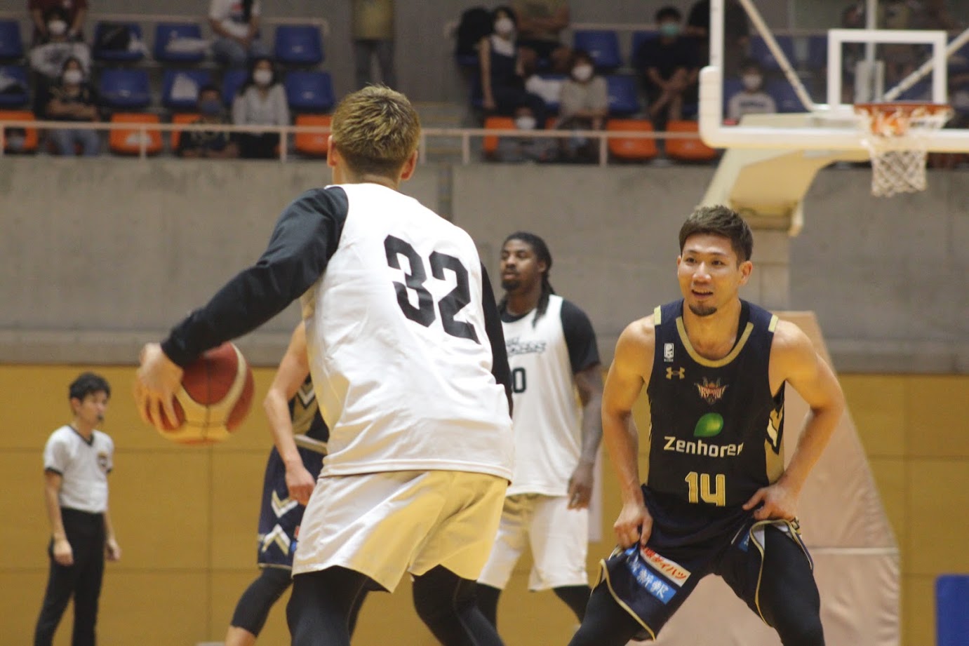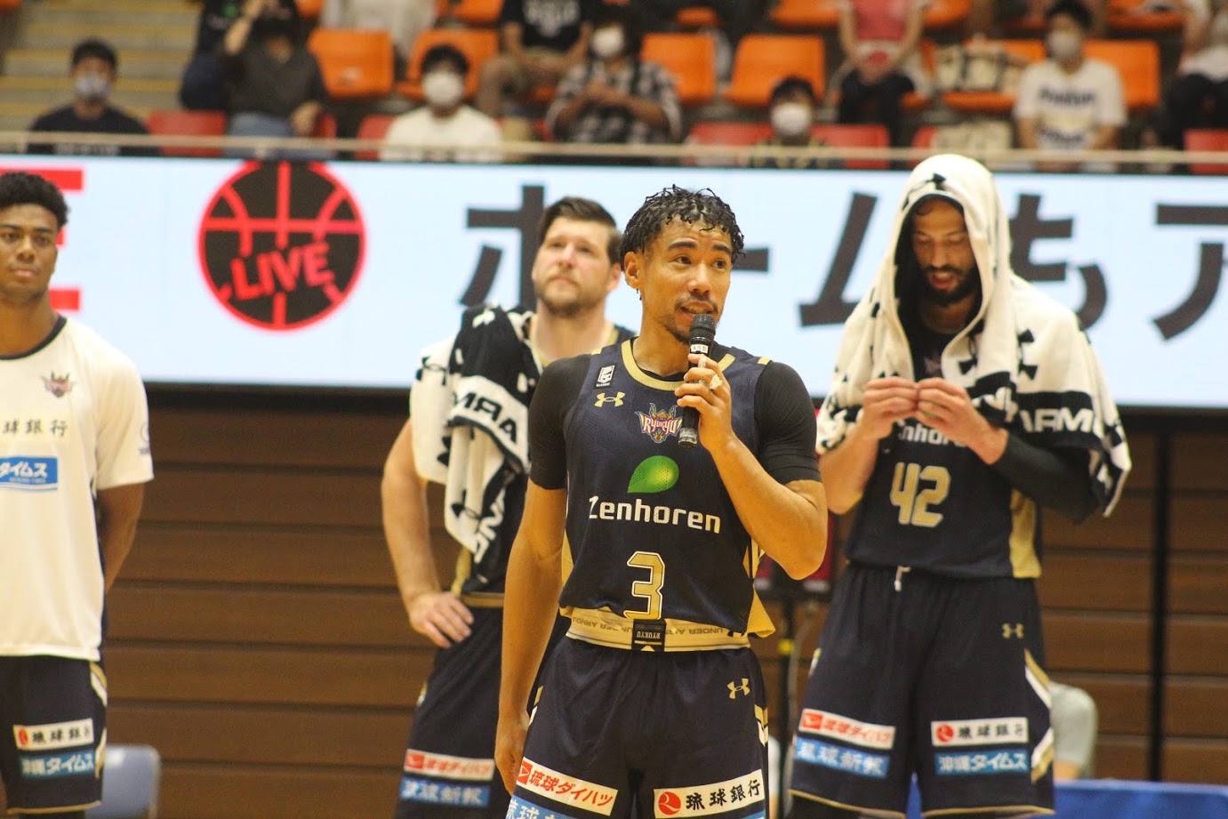 9月21日、琉球ゴールデンキングスはサンロッカーズ渋谷との公開練習試合第2戦を行い、83対76で勝利を収めた。『オフェンスでどのような終わり方をしても、次のディフェンスにしっかりと集中して40分間ハードに戦えるような収穫のある試合にしたい』と前日の敗戦後にキングス藤田弘輝ヘッドコーチが述べた言葉を、チーム全員で体現した戦いぶりは、開幕へむけての好材料となったはずだ。この度の公開練習試合は、来年5月まで続く長いシーズンを戦っていくための調整に重きを置いている面もあり、新外国人選手の合流の見通しが立たず、チームの約束事など細部を詰めていくことは難しい。そのような状況でも、キングス新戦力の#30今村佳太や大黒柱#45ジャック・クーリーの活躍、#3並里成のゲームメイクやアシストなど、随所にキングスらしさが見られたことはポジティブに捉えていいだろう。