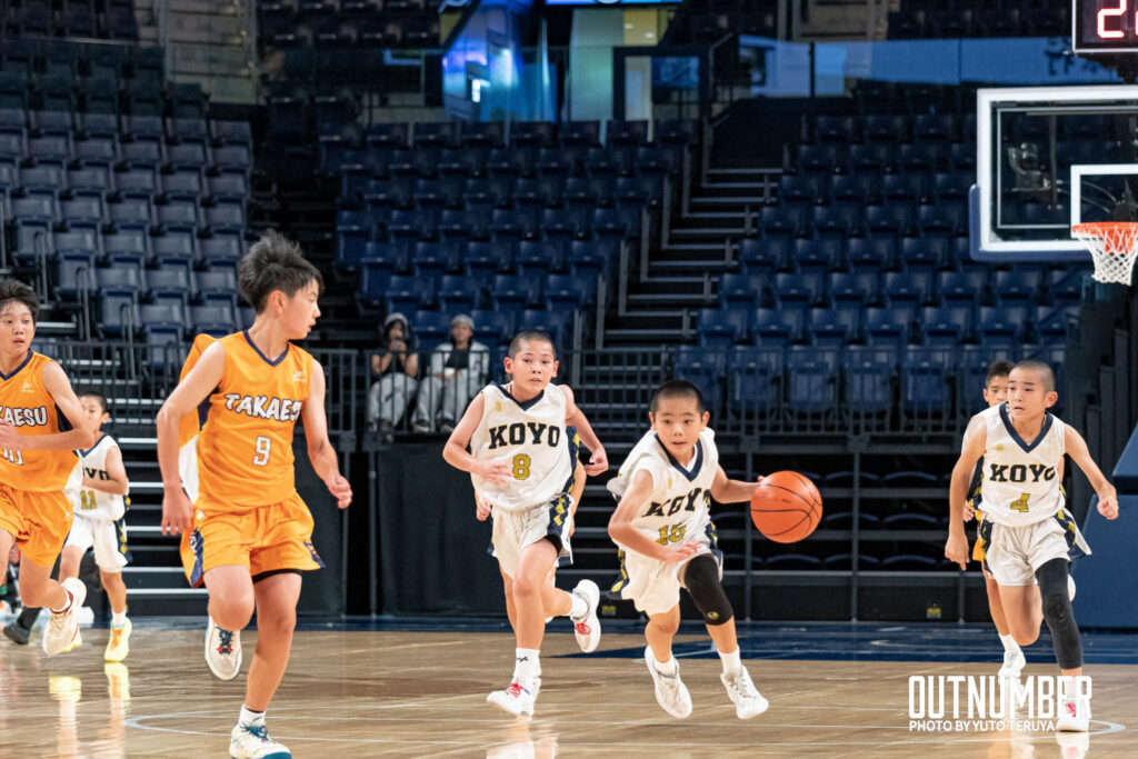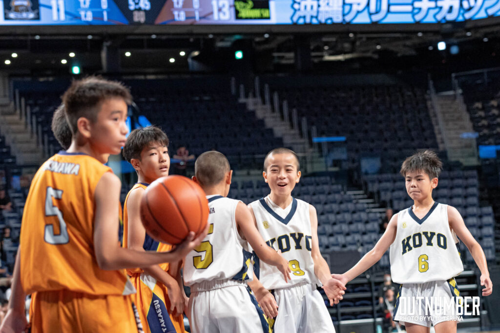 男子決勝のカードは、光洋小学校 vs 高江洲小学校となり、39-50で高江洲小学校が優勝。小学生たちが日本最高峰のバスケットボール会場である沖縄サントリーアリーナで素晴らしいプレーを見せてくれた。