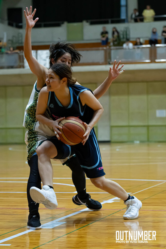 りゅうせきクラブはアーリーオフェンスと1対1を中心に得点を奪っていく。一方の双葉建機はボールと人を動かしながらオフェンスを展開。序盤はお互いに高確率でシュートを決める。1クォーターは18-22と双葉建機がリード。
