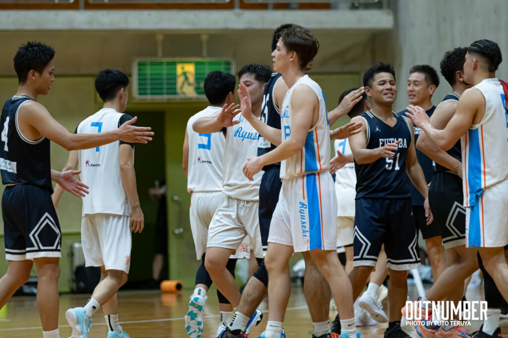 4クォーターもお互いに一進一退の攻防。双葉建機は#45 の連続スリーで76-76と追いつくも、試合終盤の勝負所でりゅうせきの #34 が得点を重ね、89-82でりゅうせきクラブが勝利。九州大会へのチケットを掴んだ。