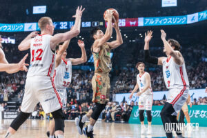 秋田戦でプレータイムが40分超えた選手を休めつつ、加えて#25アレンの怪我で疲労が抜けないまま、外国籍選手2人の状態で戦うことになった。