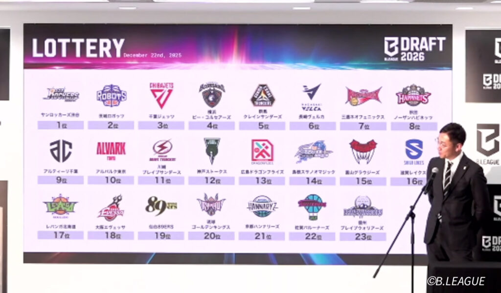 12月22日(月)、Bリーグは「B.LEAGUE DRAFT 2026 LOTTERY」を実施した。