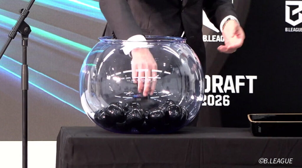 この日行われた「B.LEAGUE DRAFT 2026 LOTTERY」とは、2026年1月29日に行われるBプレミア初の新人指名ドラフトの指名順位を決める抽選会である。